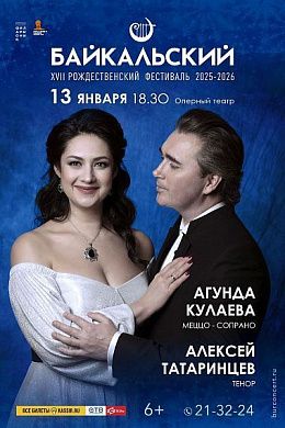 13 января в 18:30 в Бурятском театре оперы и балета состоится особое концертное событие — в рамках XVII Байкальского рождественского фестиваля на сцене выступят два выдающихся мастера оперной сцены: меццо-сопрано Агунда Кулаева и тенор Алексей Татаринцев.