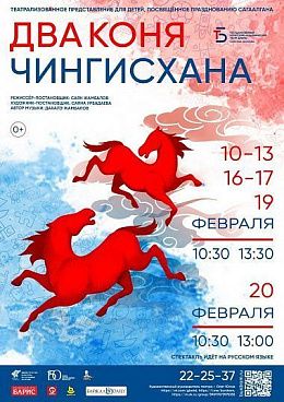 В основе представления режиссера Саяна Жамбалова лежит древний монгольский эпос о двух любимых боевых конях Чингисхана, который всегда брал их с собой в походы, они были для него незаменимы.