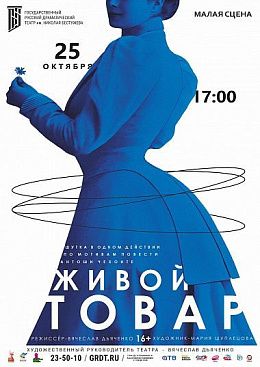 «Живой товар» – спектакль по мотивам повести А. П. Чехова, впервые опубликованной в 1882 году под псевдонимом Антоши Чехонте. Трагикомичный рассказ о женской судьбе заставляет задуматься о человеческой жизни с юмором и улыбкой. Странная история о том, как женщина становится товаром и разменной монетой в отношениях, определена режиссером как «шутка в одном действии». Судьба женщины, ставшей заложницей роковых обстоятельств, показана на фоне расслабленной атмосферы крымского курорта. Спектакль наполнен иронией Чехова и оформлен музыкой любимых композиторов автора повести – С.В. Рахманинова и П.И. Чайковского.