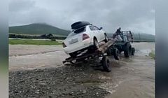Деревенский «эвакуатор» едва не уронил автомобиль при переправе в Бурятии