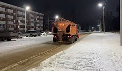 Коммунальные службы города всю ночь расчищали улицы от снега и льда.