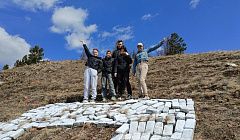 В Бурятии школьники обновили надпись на горе ко Дню Победы