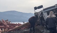 В Бурятии груженный лесовоз опрокинулся на Мандрике. ВИДЕО