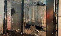 В Улан-Удэ дебоширы разнесли стекло в дверях бара. ВИДЕО