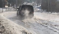Напомним, вода разлилась на дороге сегодня утром.