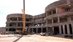 В здании продолжаются работы по возведению входной группы. Их планировали завершить к осени, но сроки пришлось сдвинуть.