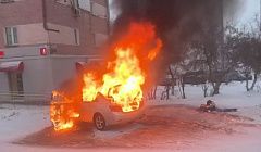 Автомобиль сгорел в центре Улан-Удэ. ВИДЕО