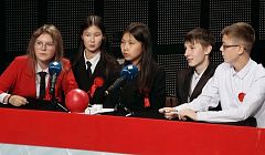Команды Бичурской СОШ№3 и Нижнесаянтуйской школы отвечают на вопросы о второй мировой войне в брейн-ринге.