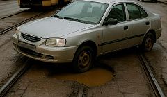 В Улан-Удэ автоледи пострадала из-за внезапно исчезнувшего асфальта