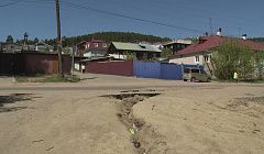Асфальт висит в воздухе. В Улан-Удэ участок дороги проваливается на глазах