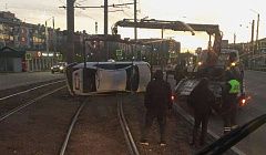 Машина вылетела на трамвайные пути в Улан-Удэ