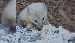 Соболь-альбинос позавтракал макаронами в Бурятии. ВИДЕО