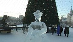 Горки уже практически готовы, елка украшена, а мастера приступили к созданию ледяных скульптур.