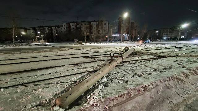 Машина снесла столб на трамвайных путях в Улан-Удэ. Опора контактной сети пострадала в 3:55 часов на проспекте Строителей.