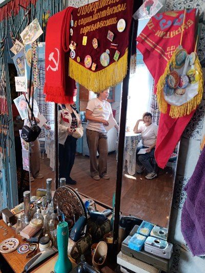 Экспонаты собирали еще до музея в местном Доме культуры, после ремонта они хранились у Елены Ивановны на веранде. И вот пришло время разместить их в новом музее. Теперь здесь представлена обширная коллекция вещей из эпохи СССР: мебель, ковры, посуда, техника, книги, картины, значки и различные фигурки эпохи СССР и многое другое. Все это можно не только посмотреть, но и потрогать.