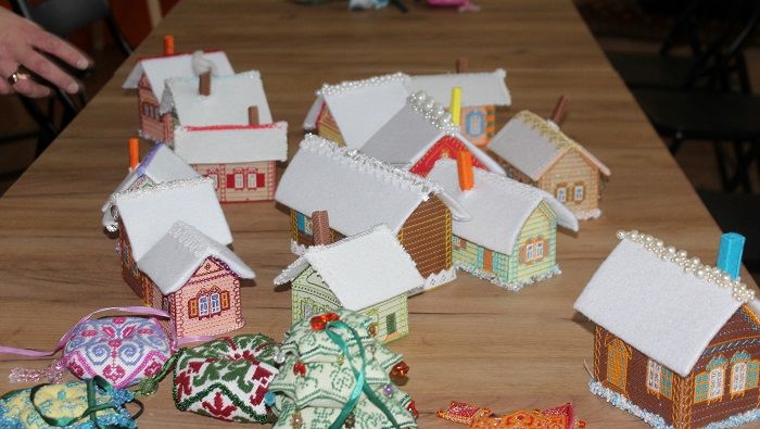 - Приехал со мной целый чемодан семейских избушек, вышитых в технике 3Д, и многочисленные ёлочные игрушки – бискорню и другие. Мы же не застряли в 18 веке, а развиваемся вместе с индустрией, вышивальные техники не стоят на месте, - говорит мастерица.