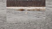 На кадрах заметно, что пернатый очень осторожен. При приближении человека он сразу же покидает воду и уходит по льду подальше.