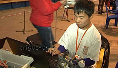 Роботы участников соревнуются в трех номинациях: стрельба из лука, скачки и борьба.