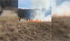 Сухая трава горела на Богородском острове в Улан-Удэ. ВИДЕО