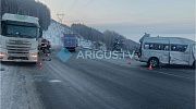 По предварительным данным Госавтоинспекции по Иркутской области, водитель большегруза следовал из Бурятии в сторону Иркутска, но выбрал небезопасную скорость. В результате его полуприцеп вынесло на встречную полосу, по которой двигался пассажирский микроавтобус. От удара маршрутку отбросило в другую грузовую машину.