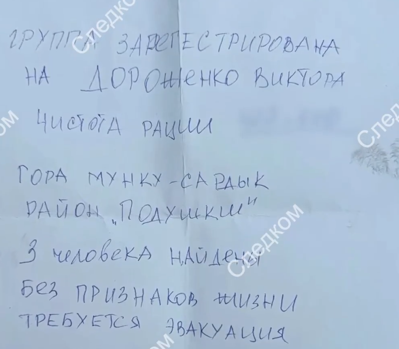 По пути альпинисты встретили супружескую пару, которая спускалась вниз. Те на всякий случай сфотографировали записку группы и позже позвонили в экстренные службы.