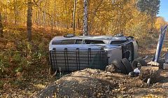 Рейсовый автобус опрокинулся на трассе Бурятии после столкновения
