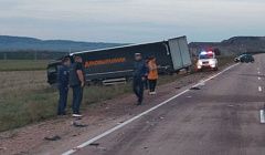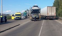 Четыре фуры столкнулись на трассе в Иркутской области
