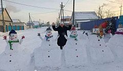 Пять снежных скульптур появились на одной из улиц посёлка Онохой.