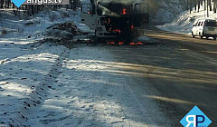 На федеральной трассе в Бурятии сгорела фура