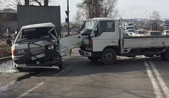 Водителя зажало в машине в крупном ДТП в Улан-Удэ (ВИДЕО)