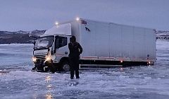 Грузовик провалился под лед на Байкале