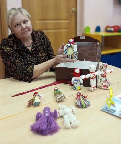 — Дети очень хорошо откликаются на это - ведь интереснее слушать Петрушку, чем взрослого с его менторским тоном. Также для детей старшей и подготовительной групп провожу мастер-классы. К примеру, ко Дню матери будем делать «Северную Берегиню». Еще на занятиях часто рассказываю об истории и значении игрушки, чтобы дети могли, придя домой, поделиться информацией. Им очень нравятся занятия с куколками. Если я заношу в группу корзинку с тканюшками, они уже знают, что будет маленький праздник. Сразу возникают вопросы «А сегодня кого будем делать? Какую куклу?». Да и просто ребятам нравится копаться в этом богатстве, рассматривать ткани, пряжу, бусины и тесьму, — рассказывает Наталья.