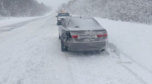 Сегодня на федеральной трассе «Байкал» между Танхоем и Клюевкой водитель «Тойоты Приус» превысил скорость во время снегопада. На 213 км дороги он столкнулся с ехавшей попутно «Тойотой Камри».