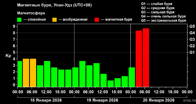 Магнитная буря столетия испытывает на прочность жителей Бурятии. Ее воздействие в республике ощутили рано утром. После 6 часов показатель геомагнитного возмущения достиг уровня  G4 (очень сильная буря).
