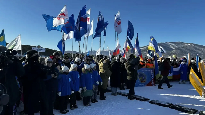 Гигантский арт-объект на «Снежной открытке» создала команда партии «Единая Россия» Фестиваль прошел на льду Байкала в Максимихе.