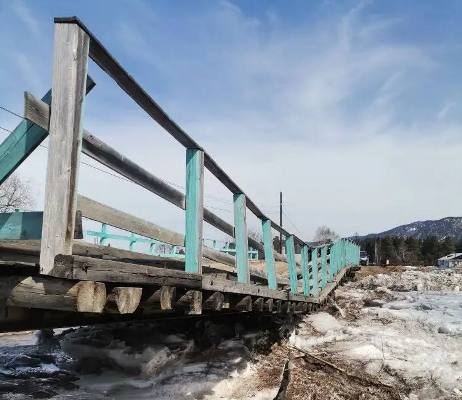 Как сообщает «Прибайкалье-инфо.24/», силами районной и сельской администрации привели в порядок пешеходный мост. Также организована работа объездной дороги из заречной части села.