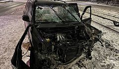 Напомним, он снес опору контактной сети трамваев.