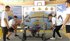Спортсмены из военных округов страны соревнуются в троеборье и жиме штанги лежа.